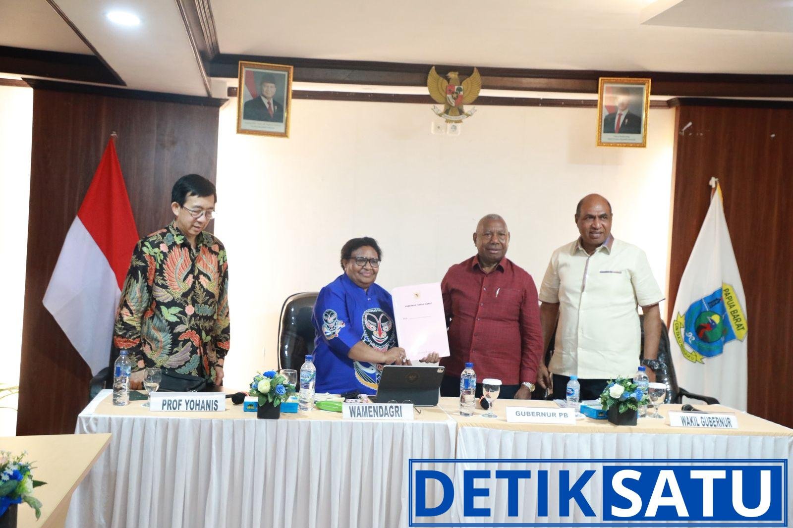 Manokwari, Detiksatu.id – Wakil Menteri Dalam Negeri (Wamendagri) Ribka Haluk mengungkapkan pentingnya penguatan kinerja jajaran pemerintah daerah (Pemda) di Tanah Papua guna mempercepat pembangunan daerah. Hal tersebut ia sampaikan saat memimpin Rapat Koordinasi (Rakor) Evaluasi Penyelenggaraan Pemerintahan Daerah dan Percepatan Program Quick Wins di Papua Barat, yang berlangsung di Hotel Mansinam, Manokwari, Papua Barat, Rabu (5/11/2025) malam.