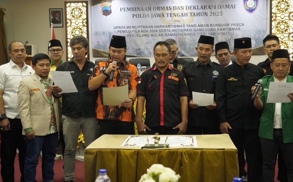 Sebagai bentuk komitmen bersama, kegiatan ini ditandai dengan ikrar dan penandatanganan Deklarasi Damai oleh para ketua dan pengurus ormas. Deklarasi ini memuat enam poin utama, di antaranya menjaga persatuan dan kesatuan bangsa, mendukung TNI-Polri dalam menjaga keamanan di wilayah, menjaga toleransi dan kerukunan antarumat beragama, serta kesanggupan untuk menghindari konflik dengan mengutamakan upaya penyelesaian melalui musyawarah. Sebanyak 19 ketua dan pengurus ormas dari seluruh kota dan kabupaten di Jawa Tengah turut menandatangani deklarasi ini, termasuk Pemuda Pancasila, GRIB, Pagar Nusa, PSHT, Kerasakti, Lindu Aji, FKSB, Senkom Mitra Polri, dan sejumlah ormas keagamaan lainnya.