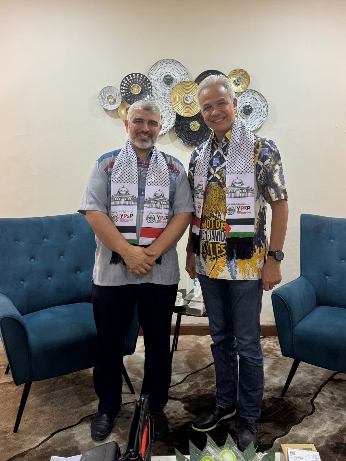Dalam pertemuan tersebut, Ganjar Pranowo, mantan calon presiden, berdiskusi dengan delegasi YPSP mengenai perkembangan terbaru perjuangan rakyat Palestina, termasuk kejahatan genosida yang dilakukan oleh Zionis di Jalur Gaza.